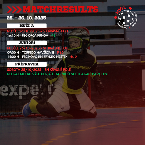 Již tradičně vám přinášíme víkendové výsledky našich kategorií: